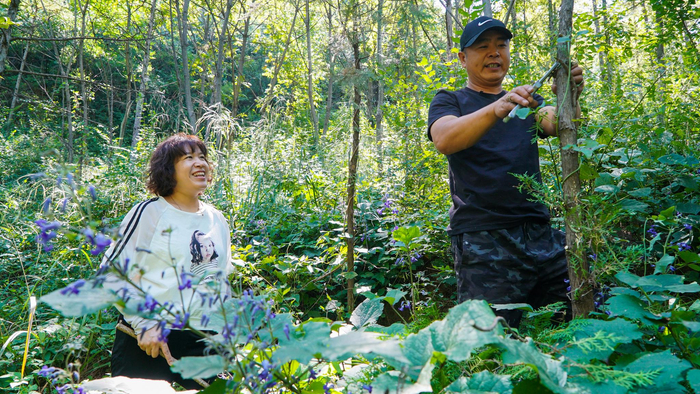 李继高、王静夫妇进山修剪树木。新京报记者 耿子叶 摄