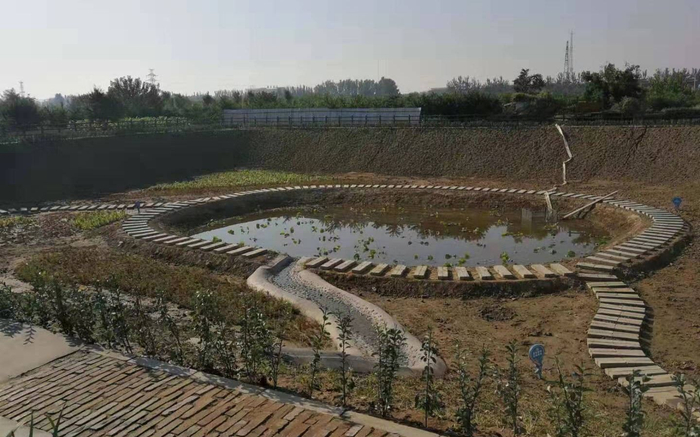 整个湿地公园是采用复合的生态降解的处理工艺,将污水处理达标之后进行排放,也因地制宜,结合村庄周边环境,设计了景观池塘。一方面通过生态降解将村里的污水进行处理,提升农村的整体环境,给村民营造一个休闲舒适的场所。另一方面减少污水排放对河流造成的污染,有助于大龙河的生态修复、河道的提升。
