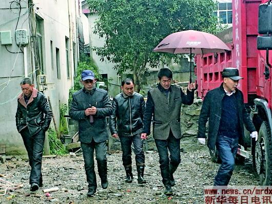 2018年12月8日,第五次化疗后,王丰华(右一)冒雪坚持踏看村里养老驿站的建设。新华社发
