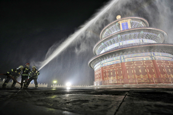 原标题:天坛祈年殿模拟雷击起火 100余人参与联合救援|组图