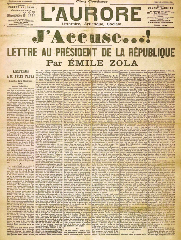 在支持德雷福斯的一方中,最具代表性的便是小说家左拉