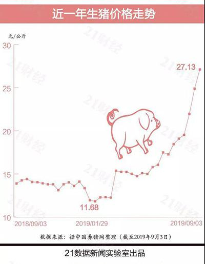 其中,6月猪肉批发价格为21.63元/公斤,对比2月价格,4个月内涨了3.44元;到了9月份,仅两个多月,价格又上涨了13.24元。