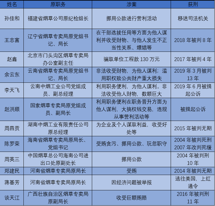 烟草系统近年“老虎”一览