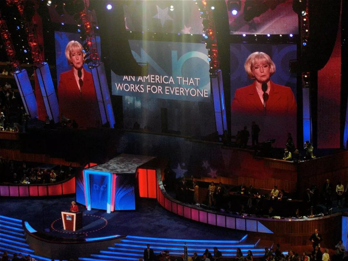 2008年,莱德贝特在科罗拉多州丹佛市的民主党代表大会上做演讲。