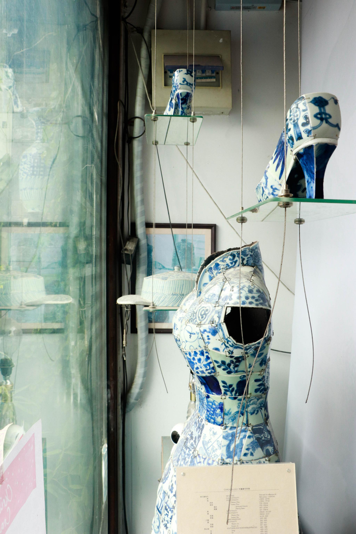 这一款古陶瓷高跟鞋由清代的青花瓷拼接而成,目前已经有人定制穿去参加社交活动,不但有观赏价值也具有实用价值,在瓷器的选择上有一些难度,为了适合脚的尺寸和舒适度,每一片瓷器都需要甄选。