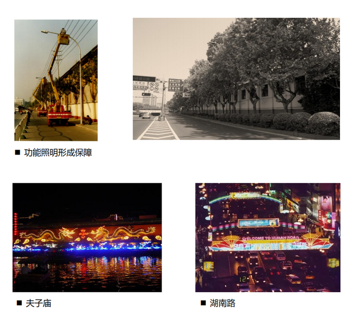 2016年,南京制定《主城区夜景照明提升三年计划》,结合南京城市特质,围绕长江、秦淮河、玄武湖、明城墙、道路系统等,提出建立“一江一河一湖两环多节点”的城市夜景照明构想,实行景观照明“三步走”战略。