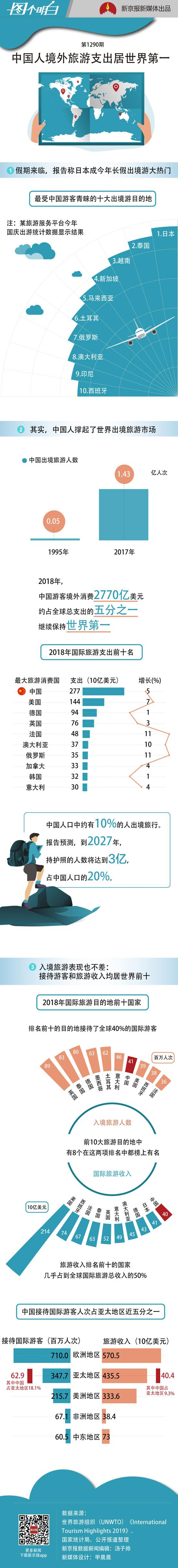 原标题:全世界哪里人最会玩?中国出境旅游人数和支出全球第一