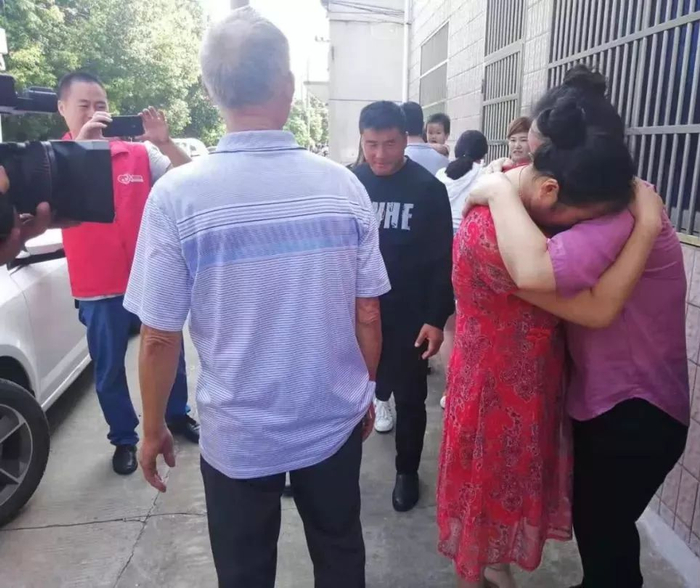 9月13日早晨王祥红(右二)与姐姐抱在一起痛哭 。受访者供图