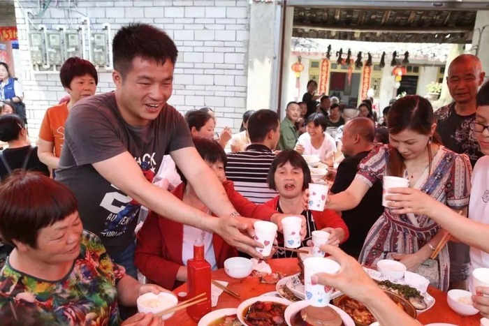 2019年5月14日,四川崇州市三江镇王桥村。王永福正在给前来道喜的亲朋敬酒。新京报记者 尹亚飞 摄