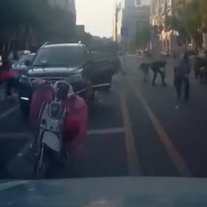 ▲福建一男子沿路撒十余万元现金。 图片来自视频截图。