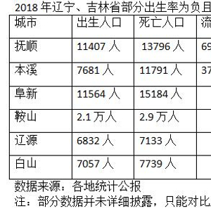 根据各地发布的2018年统计公报,东北三省成为出生率为负,同时遭遇人口净流出最为集中的省份,大批城市一年人口减少上万人。