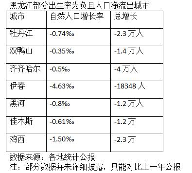 数据显示,大批东三省城市成为出生率为负且人口净流出城市。