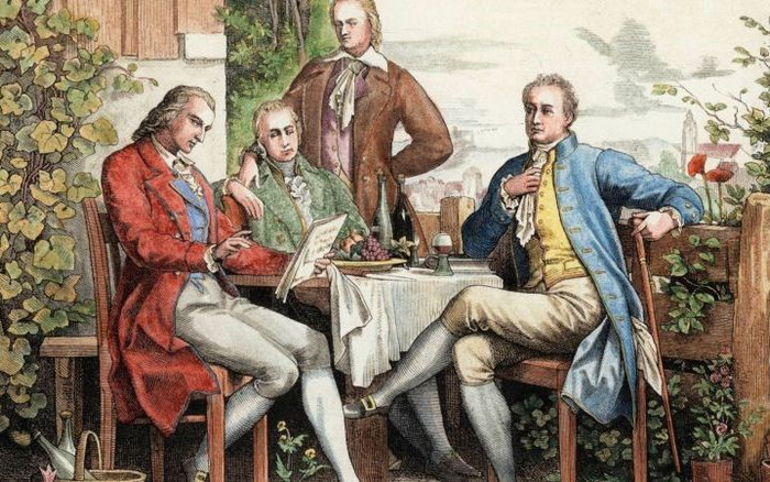 洪堡兄弟的社交圈。自左向右依次为席勒、威廉、亚历山大和歌德。图片来源:dpa。