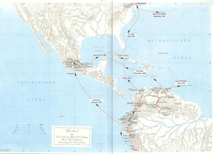 他在《去往新大陆赤道地区的旅行故事》(Personal Narrative of Travels to the Equinoctial Re-gions of the New Continent during the years 1799-1894)中写到,“我们在这一地区一年。如果没有船上的那场热病暴发,我们可能永远不会去探索奥里诺科河(Orinoco)、卡西基亚雷河(Casiquiare),还有葡萄牙殖民地边境的里约内格罗(Río Negro,今属阿根廷)。洪堡本来也没有制定固定的路线,就顺其自然,在南美登陆了。这一切的新大陆冒险之旅,就是从这场意外开始的。