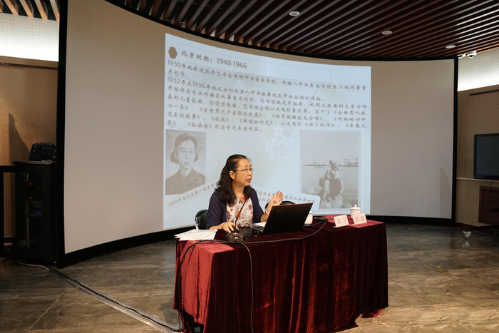 中央音乐学院音乐学系教授蒲方今天带来“女作曲家瞿希贤艺术生涯”讲座。新京报记者 倪伟 摄