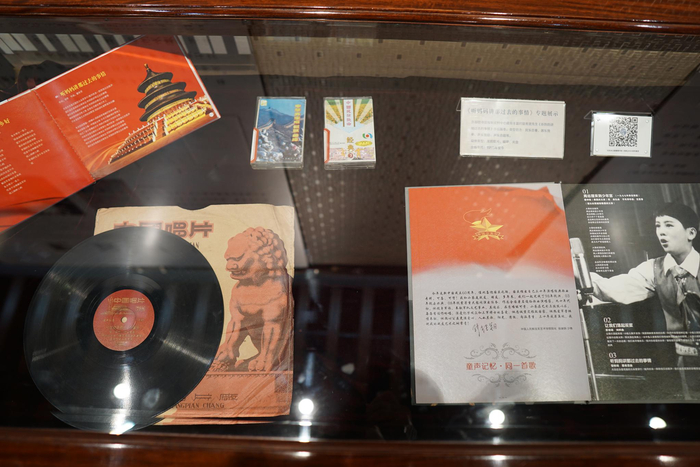 此次展览展出了大量瞿希贤的手稿文献,涵盖创作手稿、采风笔记、书信等类型。2008年,瞿希贤逝世当年,其家属将这批珍贵的手稿文献捐赠给了中央音乐学院图书馆。同时展览还展示了历年来出版发行的瞿希贤作品,其中一个展柜专题展示了《听妈妈讲那过去的事情》的各种发行版本。首图也拿出了丰富的瞿希贤作品音像资料,包括五十年代的黑胶唱片、七八十年代的磁带及九十年代的光盘资料等。
