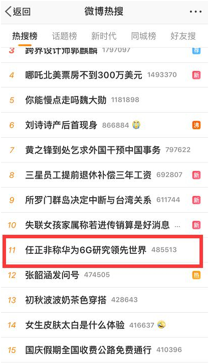 "华为6G研究领先世界"登热搜 网友:5G还没用上呢