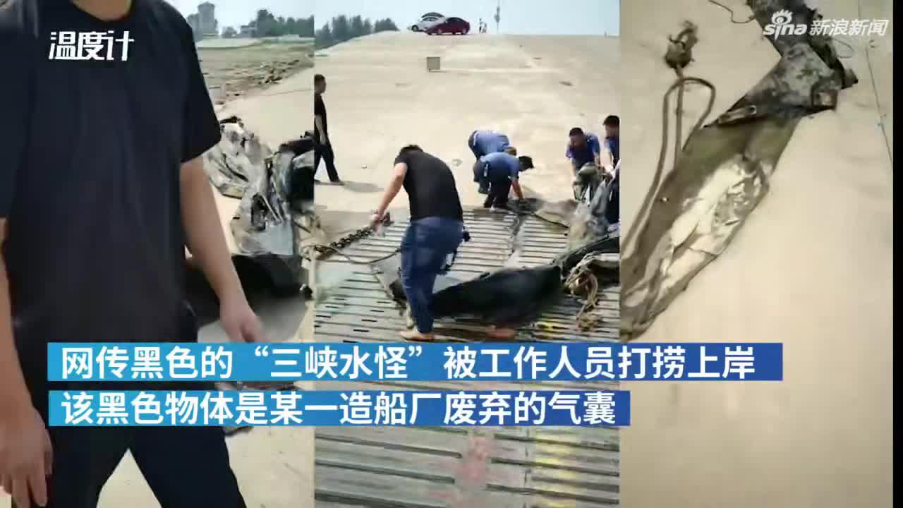 视频-“三峡水怪”被打捞上岸 系废弃的橡皮气囊