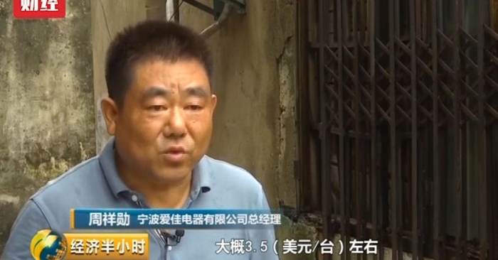 宁波某电器有限公司总经理 周祥勋:同类价格大概3.5美元一台左右,我们给他的价格是3.2、3.3 美元一台。