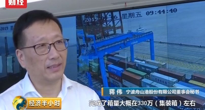 宁波舟山港股份有限公司董事会秘书 蒋伟:今年上半年,我们的欧洲线、地中海线方面完成销量大概在330万集装箱左右,占了总销量的25%。美国、美东线也是我们传统的一个集装箱量比较大的区域,上半年完成200万箱左右,约占整个总销量的15%。