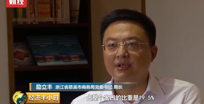 浙江省慈溪市商务局党委书记、局长 励立丰:2018年我们对美国出口占整个出口的比重是19.5%,今年我们1到7月份对美国出口相较2018年下降了将近2个百分点。但是,我们今年1到7月份的出口额增长了11.9%,与2018年同期相比增加了将近38亿。