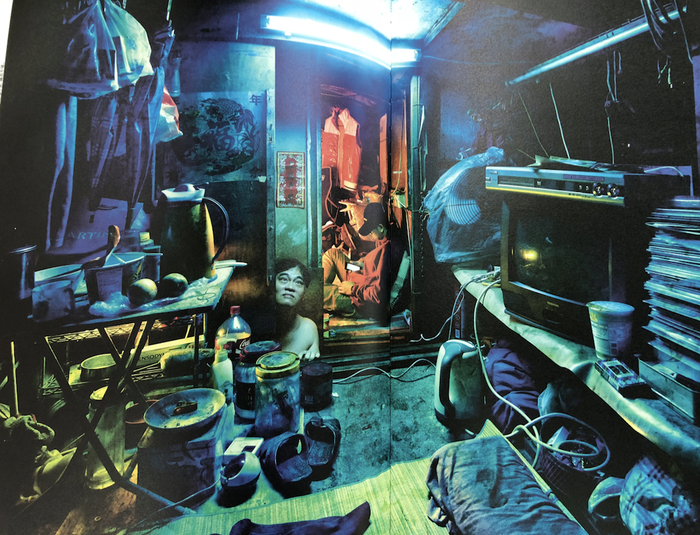 这些年来,随着港府规范劏房市场,笼屋少了,用木板围起来的板建房多了。它有另一个称呼“棺材房”,“我人未死,却已围四块木板”。一个不足400呎(约40平方米)的空间中,可以容纳近20个上下格密封的床位。既然租不起能站起来的房屋,那么只好屈膝在床上过生活。