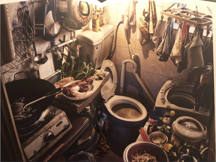 相对而言,套房的条件较好,没有上下铺,有独立的马桶与灶台。只是,这两套功能迥异的设施靠得太近了。有人是这么形容的,“厕板摇身一变成为暂放食物的小枱,食物的味道来自饭菜还是厕所无从稽考,也顾不了卫生问题。环境迫人,百般滋味在心头。”