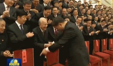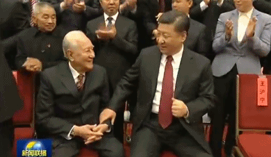 2017年11月17日在全国精神文明建设表彰大会上习近平总书记会见全国道德模范代表、黄旭华院士并一再邀请他坐到自己身边“你们这么大岁数,身体还不错。你们别站着了,到我边上坐下。”