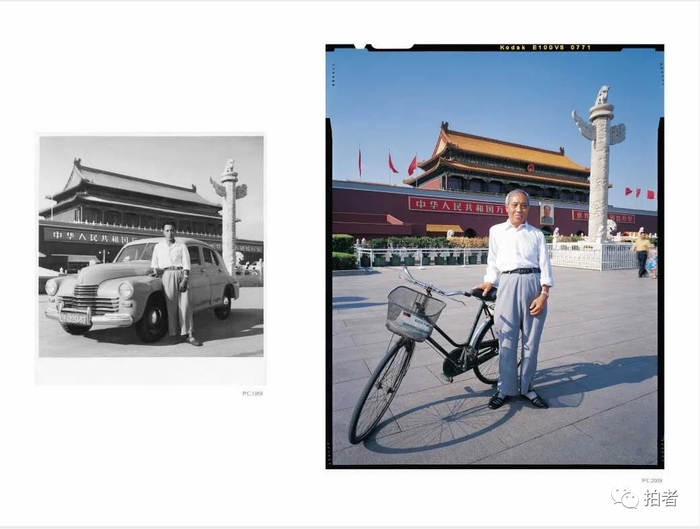 2004年春节,我整理照片时,发现了三张自己不同年纪在天安门前的留影,看到照片觉得二十年一眨眼就过去了。这让我萌生了寻找100张在天安门前留下的老照片的想法,并决定邀请照片中的主人公重返天安门,在这个特殊的环境中,对他们进行一次大规模的今昔影像对比。