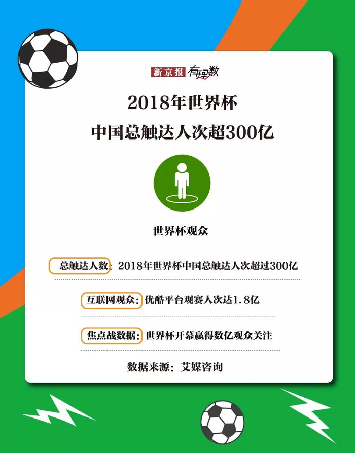 根据中央电视台对外发布的2018年世界杯报道的跨屏收视情况,2018年世界杯相关内容触达人数达278.5亿人次,加上优酷、咪咕平台的公开数据,本届世界杯总触达人次超过300亿人次。