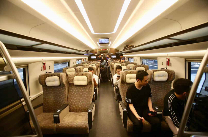 北京动车段北京南乘务车间书记白洪鹏介绍,考虑去机场的旅客携带大件行李多,二等车厢,拆掉了一个座椅,将以前的“3+2”座位布局改为了“2+2”,通道宽度从530毫米增加到了1010毫米。但是经过调整,总数从以前的1140调整到1142个,座椅总数其实并未减少太多。