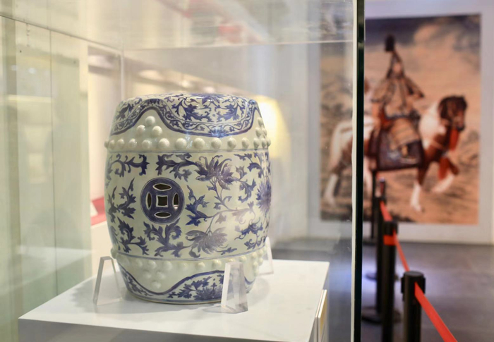 修复1860”一期中修复的青花缠枝莲绣墩已对外展出。摄/新京报记者 浦峰