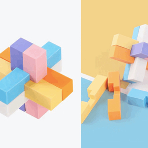 除了将故宫内的皇家图腾、文物上的图案运用到文具上,一款榫卯橡皮也让网友直呼“脑洞大开”。这款榫卯橡皮设计灵感来源于故宫建筑的大殿、藻井、歇山顶等,是榫卯鲁班锁结构中入门级的一款。橡皮可以分拆成六个部分,每部分颜色不同,要按照先后顺序才能最后拼装完成。