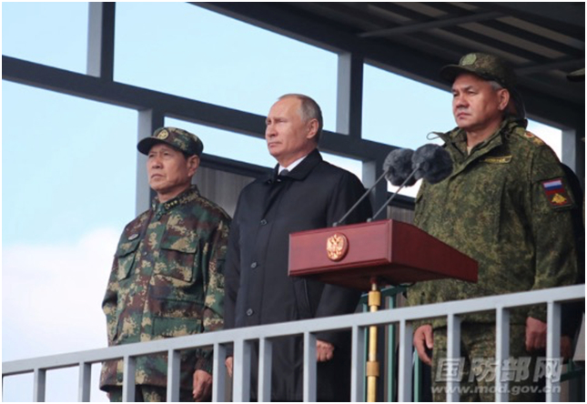 2018年9月12日至13日,魏凤和率团观摩俄“东方-2018”战略演习。(下图)