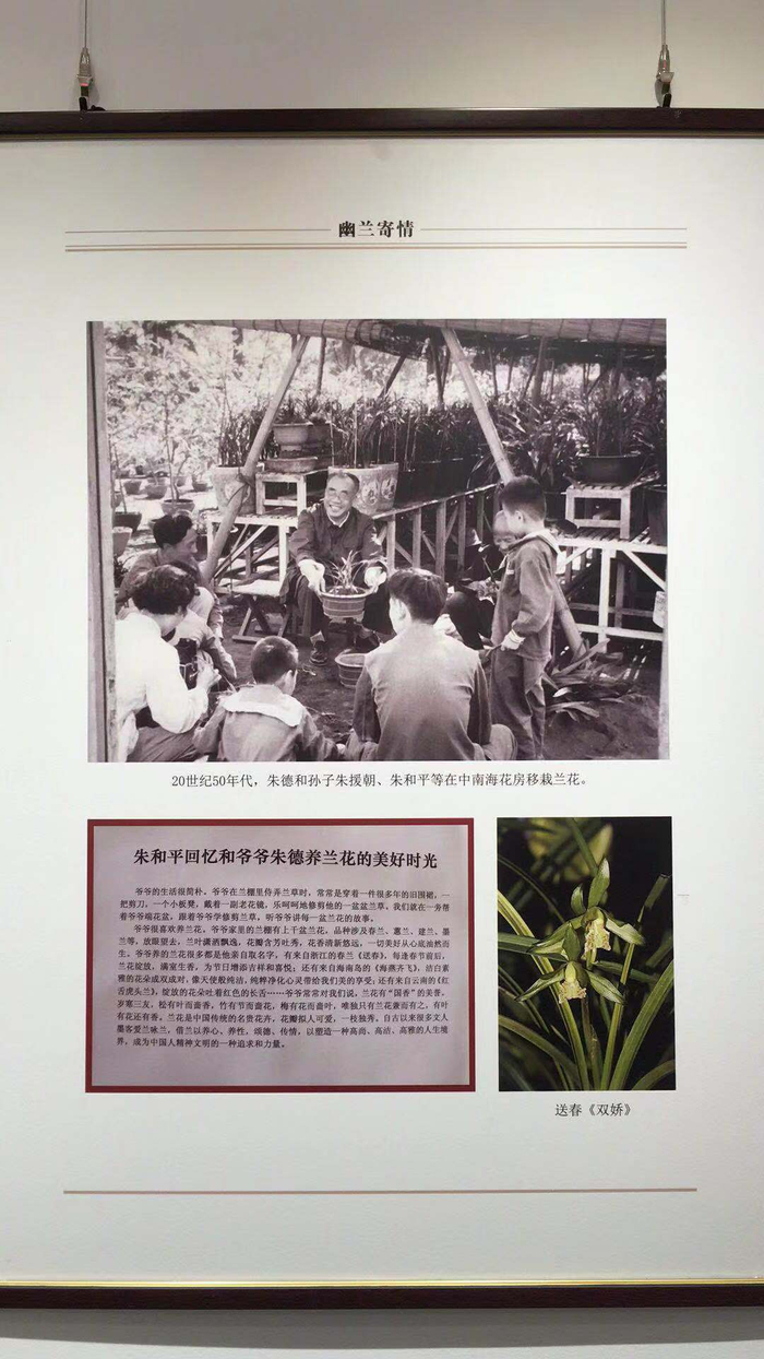 朱德与兰花专题展的“幽兰寄情”篇,朱和平用文字回忆和爷爷的养兰时光。