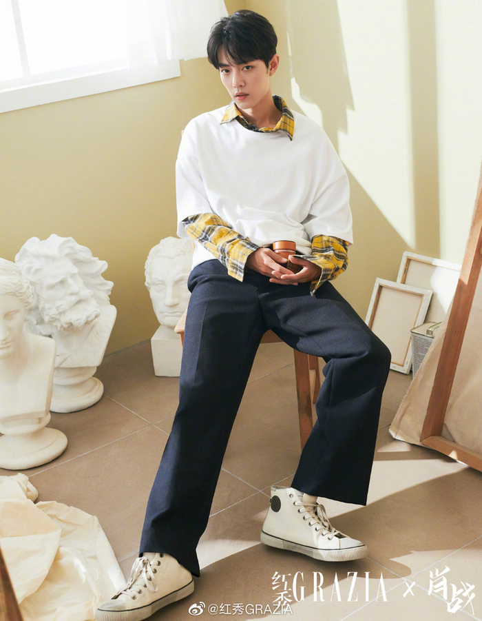 女生穿格子衫既显身材又洋气,男生穿格子衫则是青春感十足。常见的格子衬衫穿法,无非是单穿和作为外套两种,而像肖战一样搭配短款的T恤穿着,其实不太常见。黄黑配色格子衫相信很多人都有一件,不过套上白色短袖T恤,就变了模样。跳跃的色彩不显呆板,反而清爽。