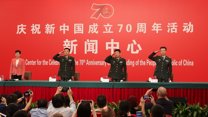 蔡志军介绍了庆祝中华人民共和国成立70周年阅兵相关情况。今年阅兵活动按阅兵式、分列式两个步骤进行,总时长约80分钟。受阅部队由59个方(梯)队和联合军乐团组成,总规模约1.5万人,各型飞机160余架,装备580台(套),是近几次阅兵中规模最大的一次。