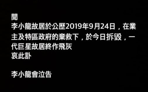 李小龙九龙塘故居栖鹤小筑拆毁,逝世前曾在此居住近一年