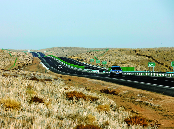 新疆首条沙漠高速公路——五彩湾至大黄山高速公路是吐(鲁番)乌(鲁木齐)大(黄山)高等级公路的延伸。