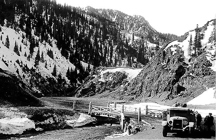 新中国成立初期的新疆山区公路。