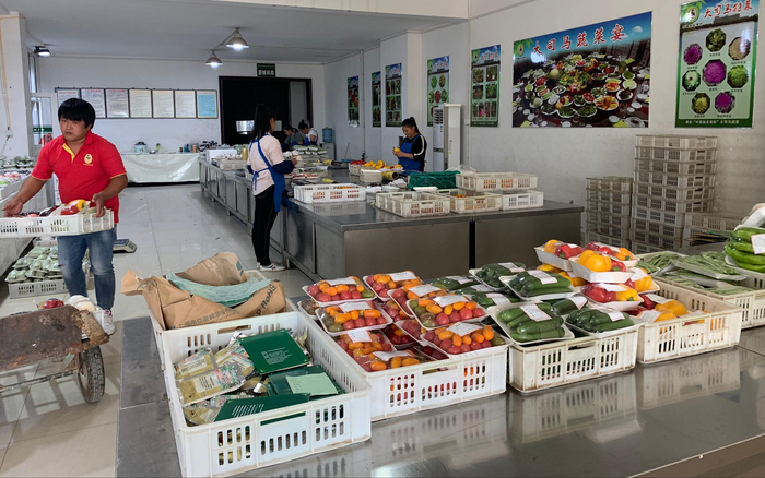“一般我们一箱有9个品种的蔬菜,按照时令、色彩、吃法来搭配,也会根据客人的需求搭配。”销售部的工作人员告诉记者,合作社中的工作人员基本都是本村的村民,每天迎接南来北往到村里用餐和买菜的顾客。