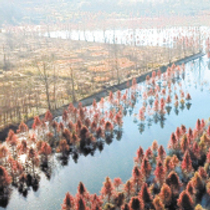 滇源街道甸尾村水杉湿地笼罩在一片飘渺水雾中,这片湿地位于滇池上游、昆明松华坝水源保护区内。记者赵伟摄