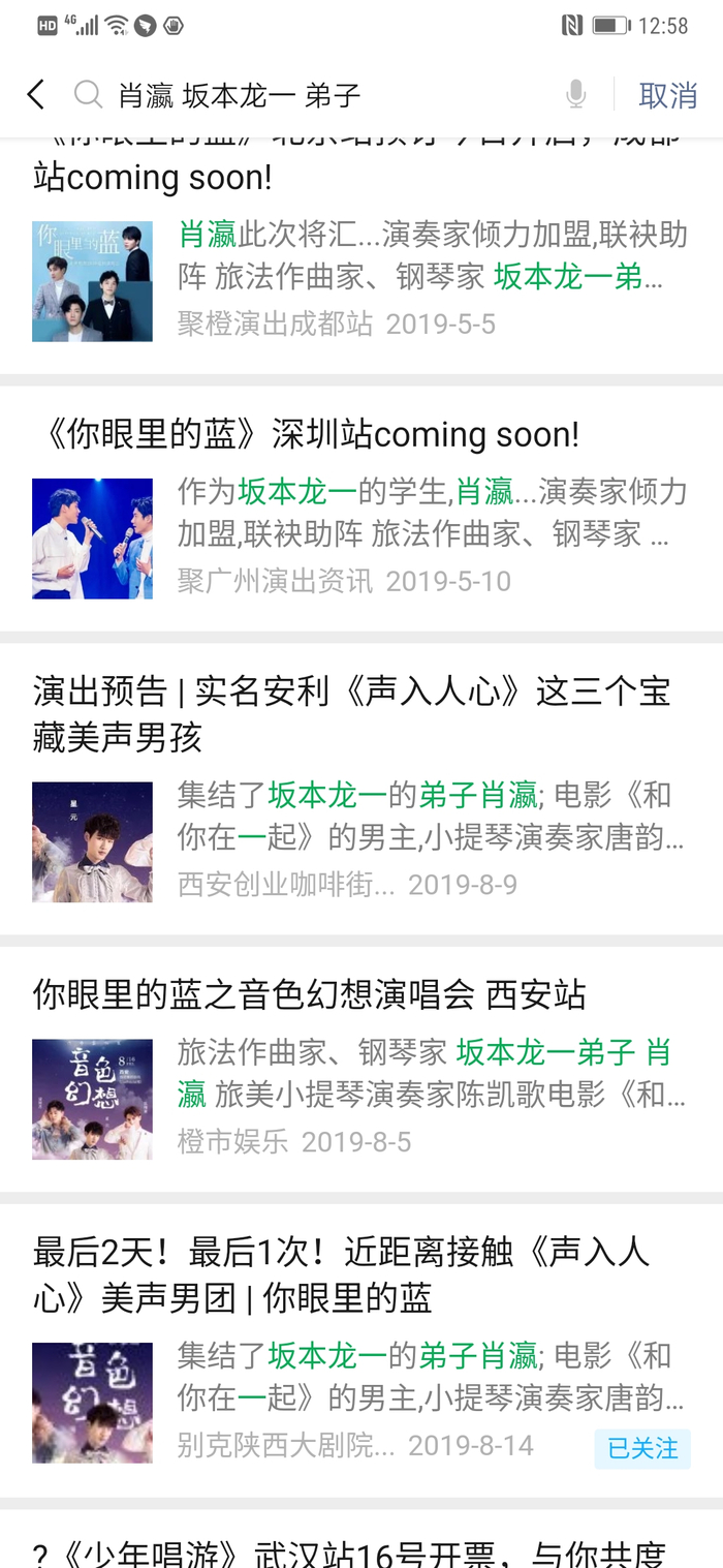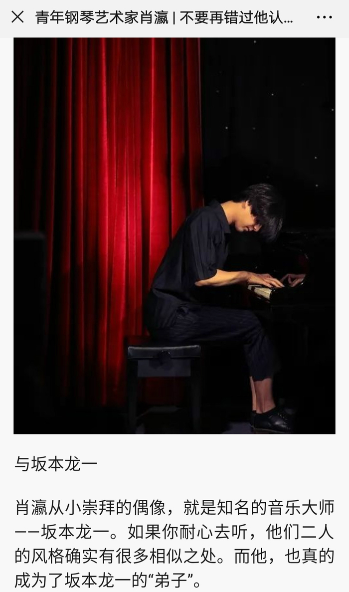 在微信搜索“坂本龙一 肖瀛”,诸多演出信息都显示“肖瀛是坂本龙一的学生(弟子)”
