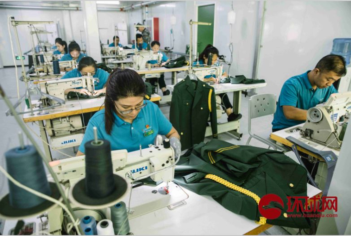 9月17日,北京昌平阅兵集训点,衣被鞋靴修理中心为参训官兵调整修理衣服。摄/李昊