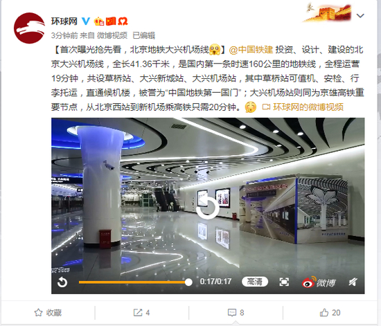 视频-首次曝光抢先看:北京地铁大兴机场线首次曝光 全程运营19分钟