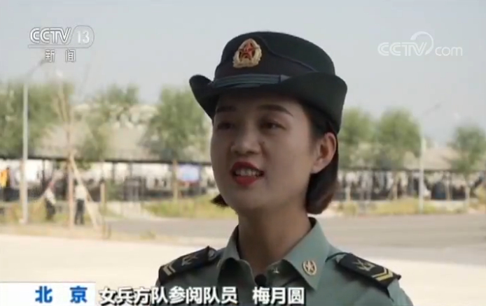 女兵方队参阅队员 梅月圆:今年我们女兵方队首次以挂枪姿态接受检阅,我们女卫生兵不仅能背起药箱救死扶伤,还能扛起钢枪打胜仗,执行更多的任务,发挥更大的作用。
