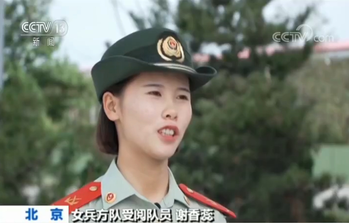 女兵方队受阅队员 谢香蕊:我是一个特别爱动的人,让我站军姿那么久,确实是在磨砺人的意志。当兵的历程中能参加一次阅兵真的是我最大的荣幸了。