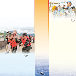 图①:7月,中国第二批赴苏丹维和直升机分队荣获联合国和平荣誉勋章。 新华社发 图②:8月,超强台风“利奇马”登陆浙江,官兵们在临海市转移受灾群众。曹 峰摄 图③:海军进行“潜机协同”训练。资料图片