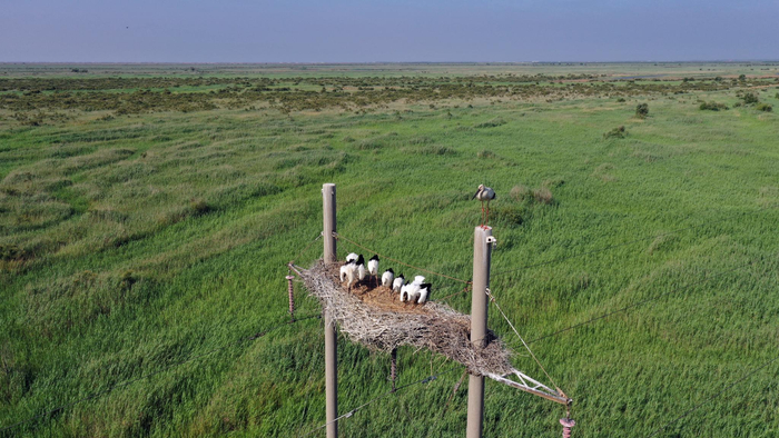 为了把东方白鹳留下,保护区工作人员费尽了心思。东方白鹳习惯在高处筑巢,一般会选择树木高大的稀树林,由于缺少高大乔木,十几年前,东方白鹳就开始在电线杆上筑巢。