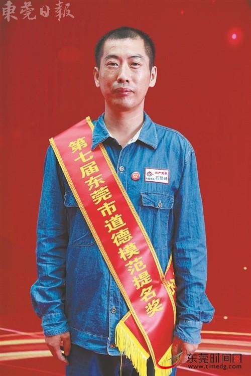 石登峰,男,41岁,中海油销售东莞储运有限公司立沙油库操作工。他参加无偿献血有16年,4次获得全国无偿献血奉献奖金奖。他还坚持在献血车、血站现场参加志愿服务,很多准备献血的人因为他的讲解而愉快地参加了献血。他获得过市人民政府授予的“2006-2008年度东莞市无偿献血优秀志愿工作者”及“2010年度东莞市优秀新莞人”等荣誉称号。他在网络中宣传献血知识也有13年,建立了多个博客、微信公众号,在网上发布的宣传无偿献血、志愿服务等公益帖子有2万条以上。他还是中国造血干细胞捐献者资料库志愿者及中国人体器官捐献志愿者。